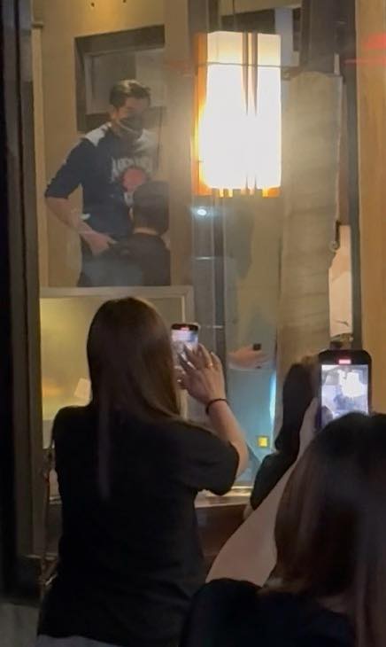 然後想當個稱職追星族,還真要蠻有一套的…… 後來發現他們直接在1樓訂餐位、包遊覽車在餐廳旁候車、粉絲小孩還會喊偶像名字Bye、站在必經之路(照片2黑車旁邊,所以他本人一定看得到這幾位粉絲)